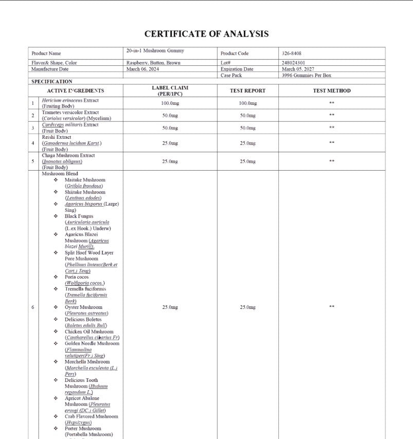 Support your wellness routine with a delicious blend of 14 functional mushrooms, packed into a tasty, chewable gummy! Each serving is expertly crafted to bring you a premium mix of time-honored fungi — no capsules, no fuss. Just flavorful, plant-powered goodness.